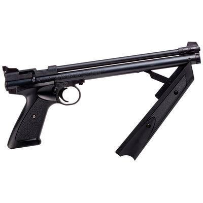 The classic american pump pistol features a sleek and modern design.This pneumatic air pistol has a single-action bolt design for easier cocking and loading, a rifled steel barrel for accuracy, and an easy-pump forearm for variable pump power allowing the user to control the velocity for whatever shooting you are doing.The classic american pump pistol features a single-action bolt design for easier cocking and loading, a rifled steel.177 caliber barrel for accuracy, and an easy-pump forearm for variable pump power.It has a fixed blade front sight and a windage-adjustable rear sight designed to use as a notched sight or as a peep sight.