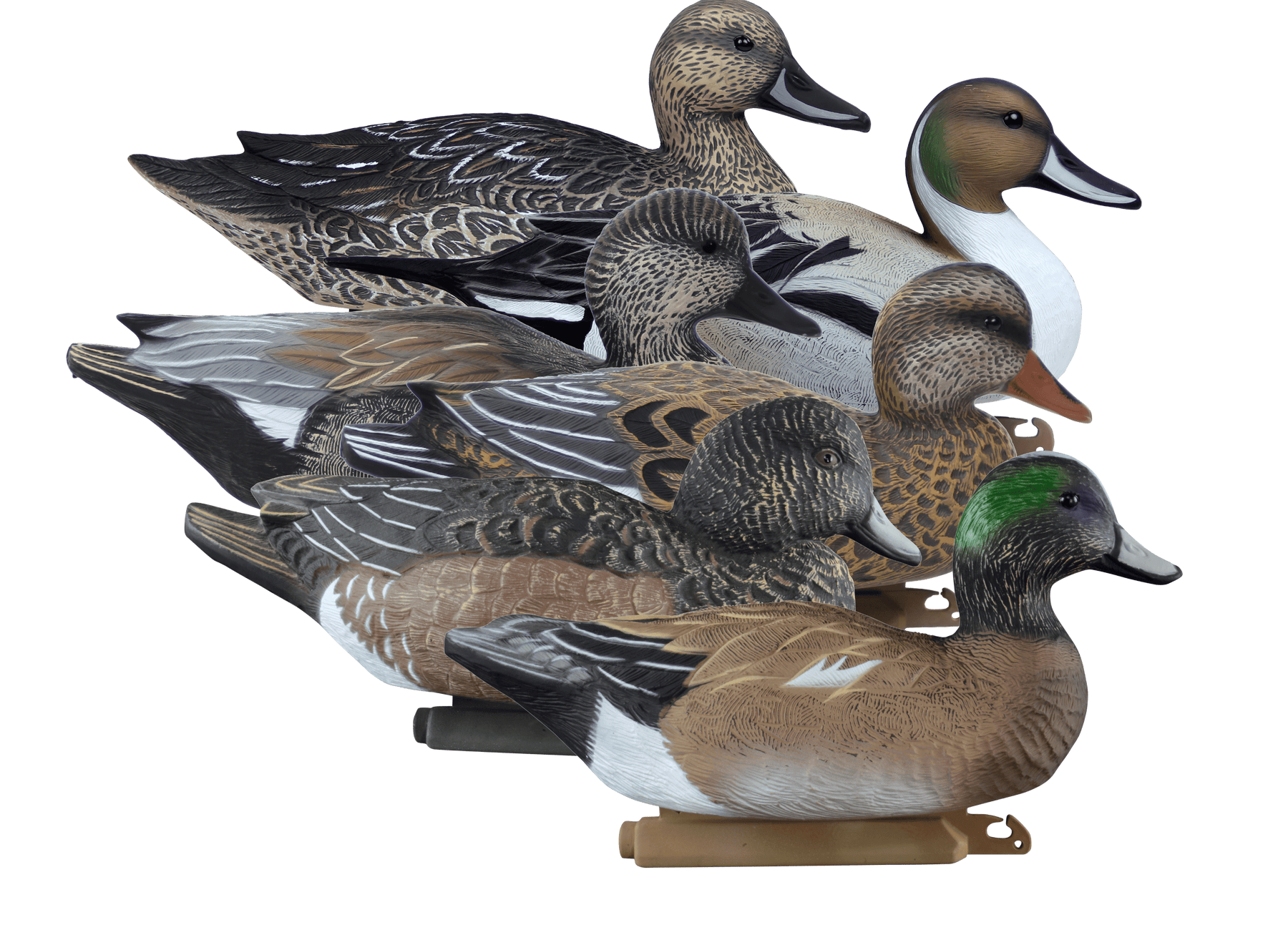 When you need a single pack of decoys to make a massive statement in size and variety, the higdon battleship puddle pack is sure to get the job done.This pack is made up of pintails, gadwall and widgeon and is a lethal combination for duck hunters that want to add a lifelike mix of variety and realism to their spread.Higdon set the standard for foam filling and these battleships are unsinkable, so you never have to worry about shooting your decoys.Package contains different body postures, varied tail feathering and multiple head positions.Weighted keel for quick and easy set-up.Keel allows short stringing decoys for shallow water.Package contents: upright pintail drake and hen, upright gadwall drake and hen, upright wigeon drake and resting wigeon hen.Dimensions and weights may vary.