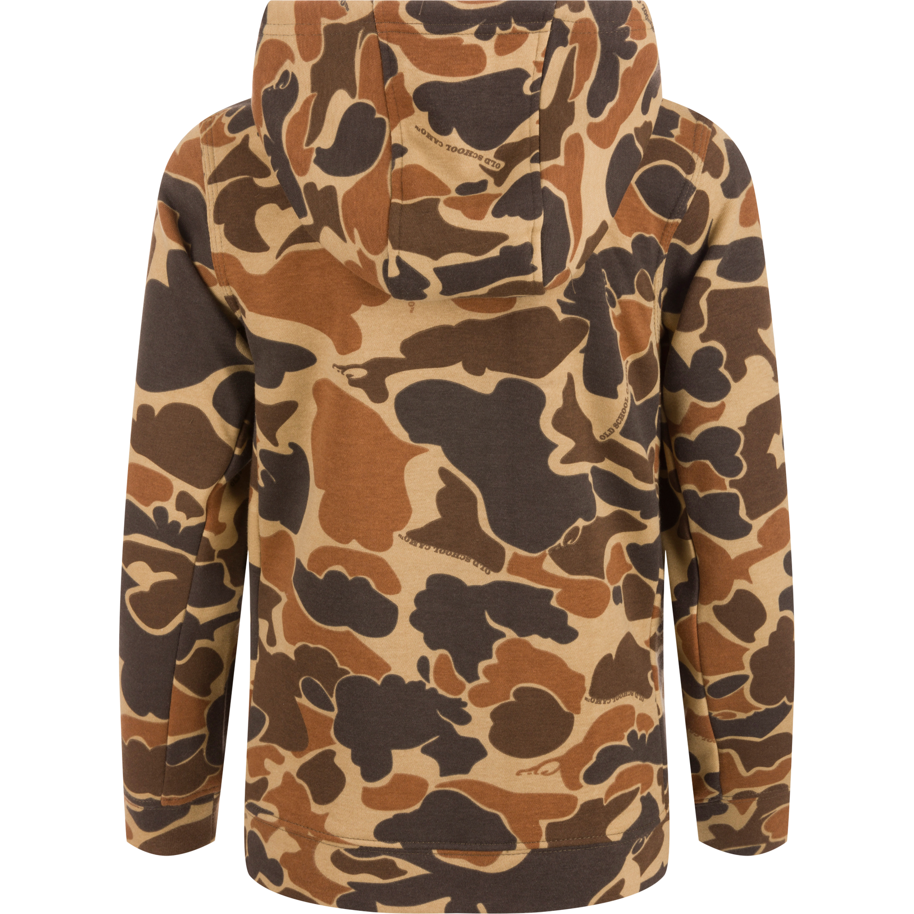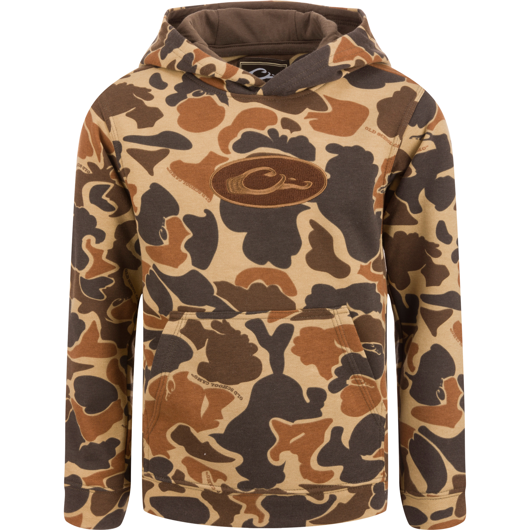 A youth version of our men’s hoodie, the Drake Youth Three End Logo Hoodie is constructed from a super soft blend of cotton and polyester. Featuring our Exclusive Old School Camo, it is a great piece to wear alone, or it can be used as a mid-layer piece for those frosty winter days. Complete with a traditional kangaroo pocket to keep your hands warm along with a 3-piece lined hood. The Three End Logo Hoodie is a great layering piece for fall mornings at the bus stop.