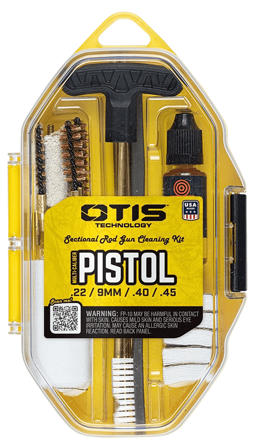 Got a multitude of pistols? get the multi-caliber pistol cleaning kit from otis-specifically designed to tackle your wide range of pistols including.22 cal, 9mm,.40 cal, 10mm and.45 cal.This kit includes everything you need to service and maintain your pistols, featuring solid brass rod sections
