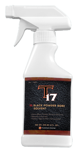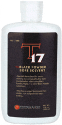 The t-17 black powder bore solvent by thompson center arms is specially formulated to effectively clean and neutralize the harmful fouling left in the bore from triple se7en and other black powder substitutes.This solvent helps to remove plastic, copper and lead deposits that could affect the accuracy of a rifle.