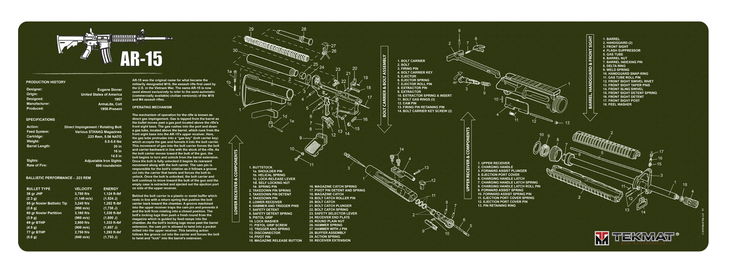 The 36" tekmats oversized design gives you plenty of room to handle a fully disassembled handgun with room to spare for tools and accessories.The 1/8" padding on these mats offers extra protection from any rough handling or drops while working on your firearm.The ultra-soft, oil and water-resistant surface helps protect your firearm from scratches while the diagrams and illustrations help with cleaning and disassembly.