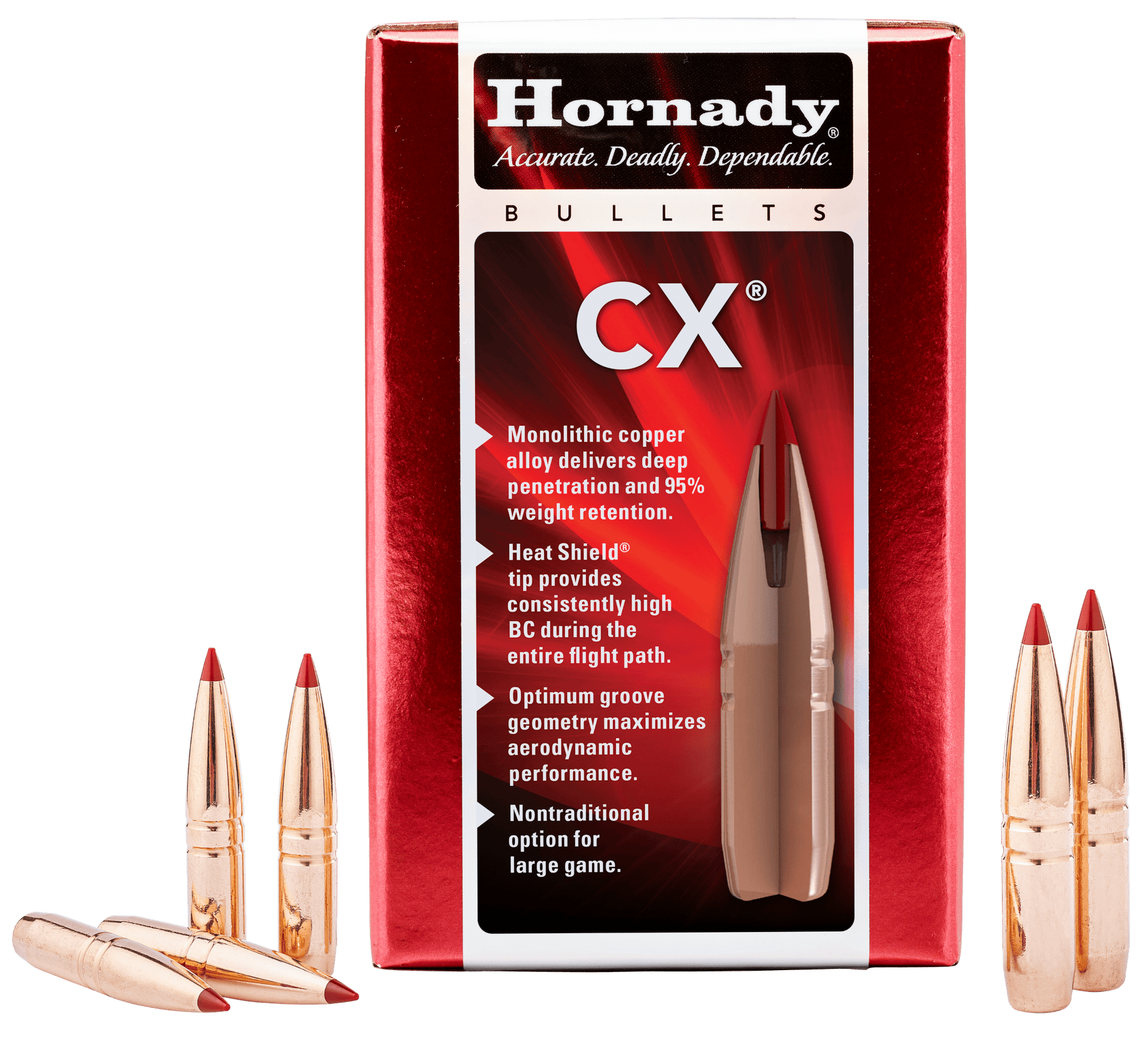 The cx (copper alloy expanding) bullet from hornady represents the most advanced monolithic hunting bullet on the market.Its optimized design offers extended range performance, greater accuracy, high weight retention, and deep penetration.