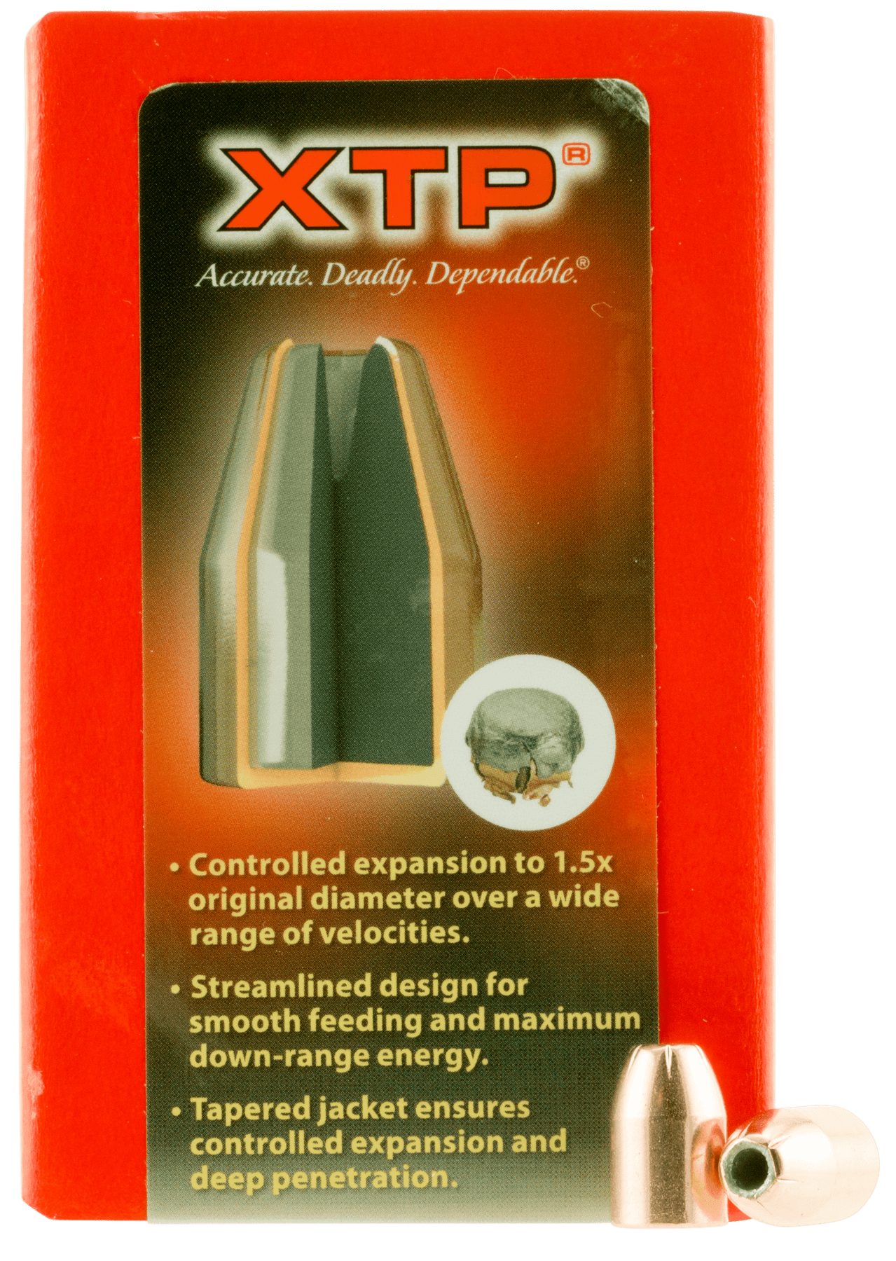Designed for hunting, self-defense and law enforcement applications, the xtp bullet demonstrates the kind of accuracy that led many competitive shooters to adopt it.The stopping power of the xtp bullet has a truly built its world-class reputation.Precise serrations divide the bullet into symmetrical sections, strategically weakening the jacket and initiating controlled expansion even at low velocities.The gilding metal jacket protects the nose of the bullet, while the total uniformity of core density ensures balanced expansion as well as in-flight stability.