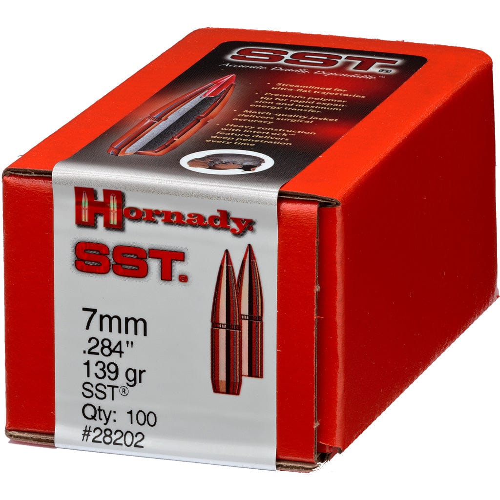 Short for "super shock tip," the hornady sst is designed to deliver tremendous shock on impact while expanding quickly and reliably, particularly at higher velocities.Flat shooting and deadly accurate, it's an ideal bullet for whitetails, as well as most north american game animals from antelope to moose and similar-sized african plains game.The sleek polymer tip increases the ballistic coefficient, while the secant ogive boat-tail profile gives hunters the speed, ballistic efficiency and downrange energy they're looking for.It utilizes an interlock ring which ensures the core and jacket remain locked solid during expansion.
