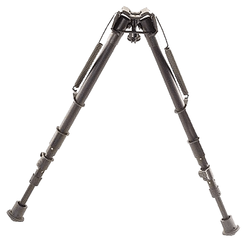 Ultra-light Harris Bipods are lightning quick and manufactured with quality heat treated steel and hard alloys. The bipods are quick-detachable and clamp to the Q.D. stud of bolt action rifles with conventional stock design. Carrying your rifle with a sling or shooting off-hand is not impeded by the use of a Harris Bipod. Series S Bipods rotate to either side for instant leveling on uneven ground. Hinged bases have tension adjustment to eliminate tremor. Bipods have an all-weather black anodized finish.