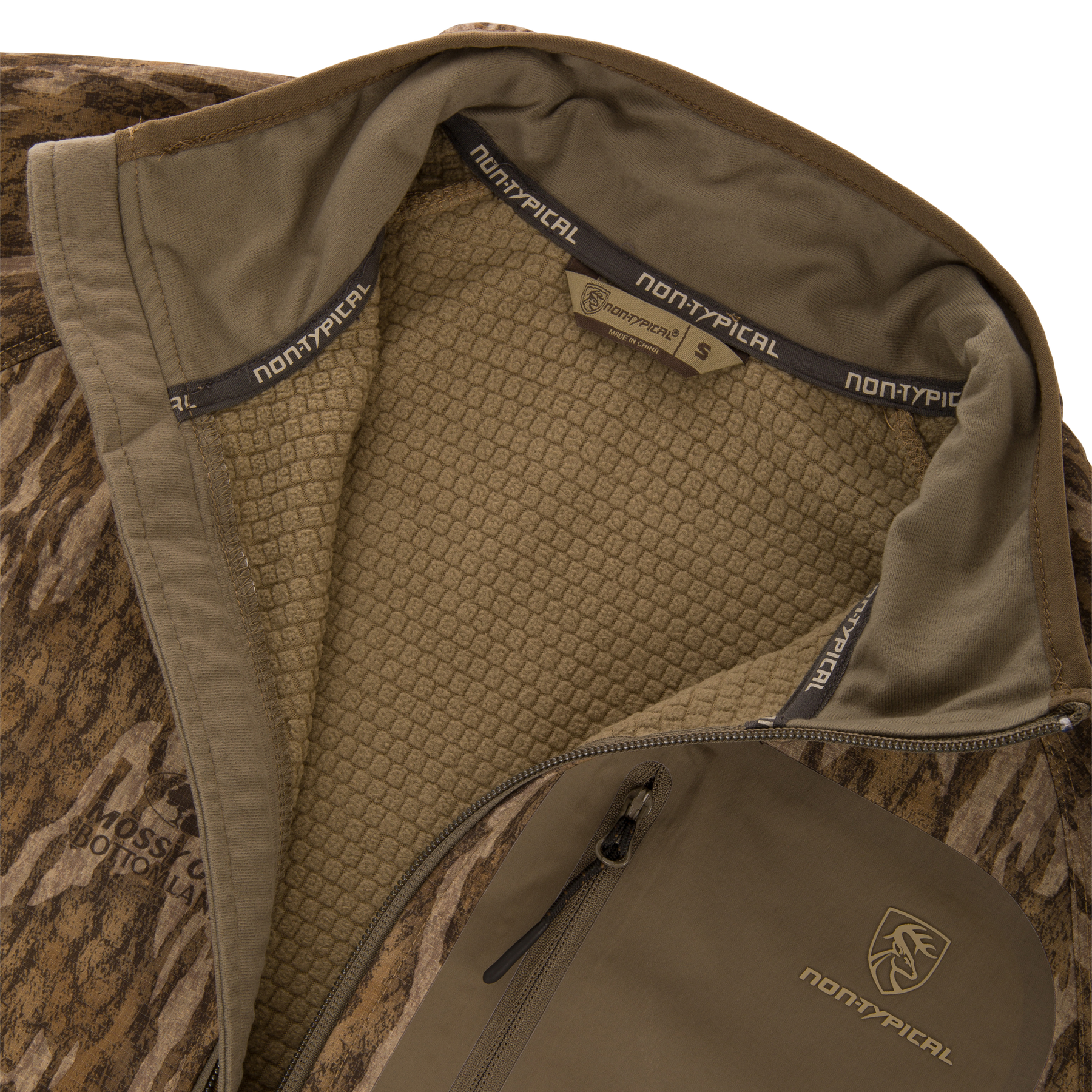 Introducing the Non-Typical SWT Hybrid Half Zip with Agion Active X2 technology. Innovative SWT stretch material wicks away moisture, while bonded fleece and gridded texture provide added breathability. DWR treatment and anti-odor/microbial technologies ensure durability and protection. Keep essentials in the water-resistant chest pocket and full pass-through kangaroo pocket.