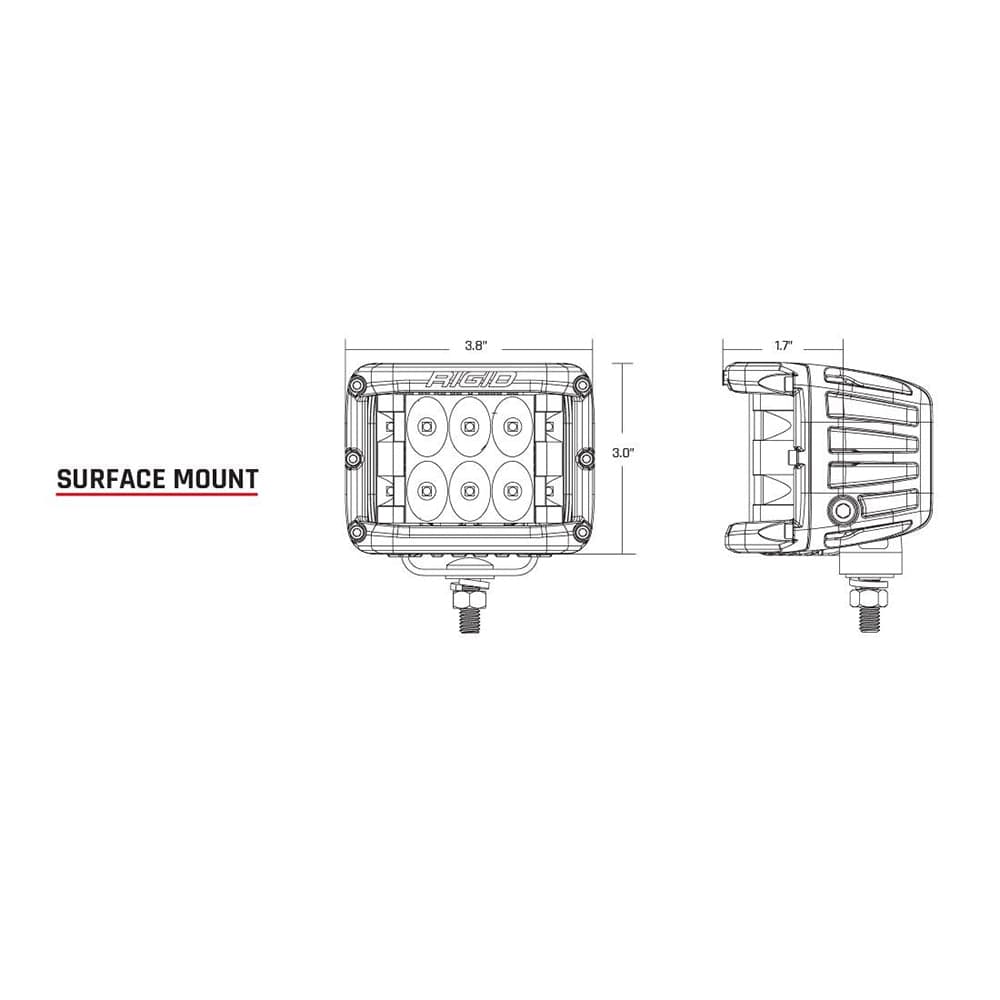 One of RIGID's most versatile, compact lighting solutions just got better with the RIGID D-SS PRO, Dually-Side Shooter Professional Race Output LED pod. Perfect for any application that requires a wide spread beam, including A-Pillars, Fog Lights, and motorcycle applications. The D-SS PRO incorporates powerful optics and recently improved LED technology for greater output with the added benefit of additional LEDs aimed to the side for a much broader beam. The D-SS PRO packs a powerful punch with up to 102% more raw lumens depending on the optics chosen The D-SS PRO fixtures boast up to 120-degrees of horizontal lighting coverage when used in pairs or when used in the single light applications. The main forward-facing LEDs are available with RIGID's advanced Spot, Flood, or Driving optics, so there's a D-SS PRO lighting solution for nearly any application. The D-SS PRO LED lights are available in pairs with three side-shooting LEDs on one side of each fixture, or in single applications with a pair of side-shooting LEDs on both sides of the fixture. Only RIGID provides a broad, powerful lighting solution in such a compact package.