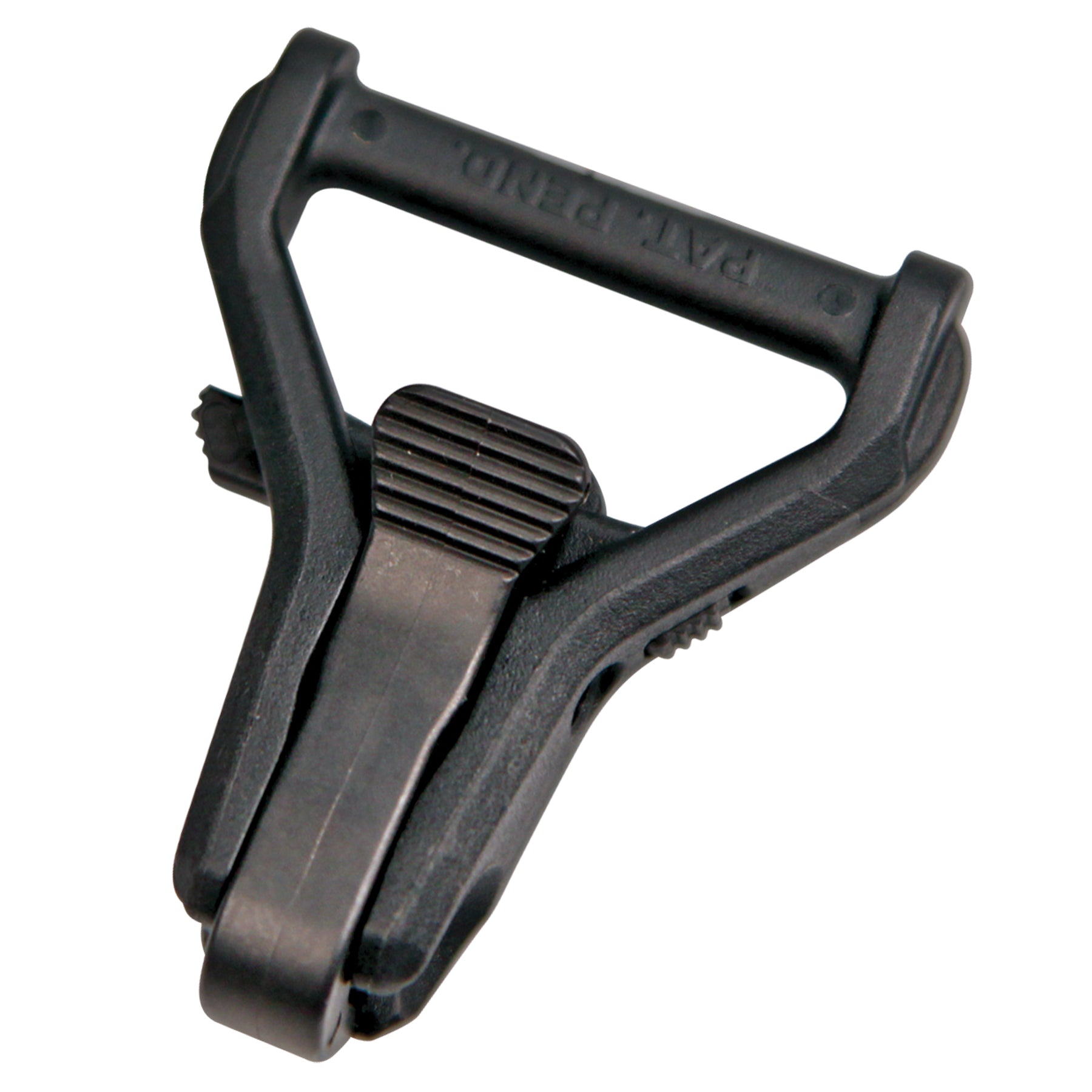 Made in the usa, the paraclip is a clip-style sling attachment point for 1-1/4" webbing.A cross-bolt lock bar allows the user to optionally lock the lever closed for extra security.It is compatible with asap plate, rsa, msa, sga receiver sling mount, and many other clip-in sling attachment points.Note: snap-hook style sling loops with an inner diameter of at least 3/8" are required, but 9/16" and larger will provide full range of motion.