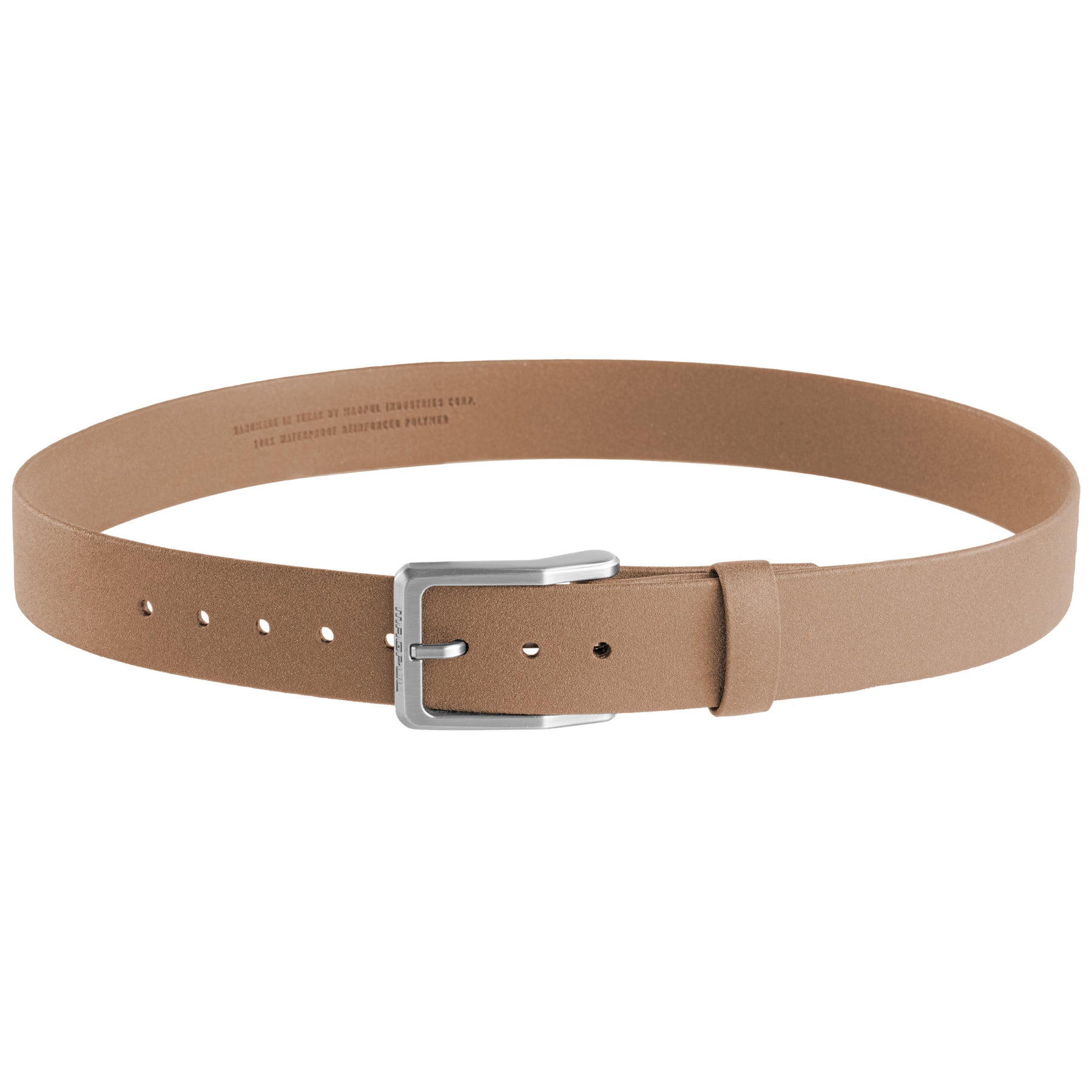 Magpul upgraded their tejas gun belt "el burro".With new materials and design, built from a single flexible layer of waterproof, textured and reinforced polymer that provides dress belt comfort with stretch and sag-free performance whether you're carrying or not.Its cut in a standard 1.50", tapered tip, making it easier to put on and take off and the buckle comes in brushed antique silver and sits flat against the waist.It includes easily removable tool-free fasteners if you need to remove the buckle for any adjustments.*note- do not order your waist size or pants size.Lay an existing belt out flat and from where the belt folds at the point where the buckle is attached, measure to the hole that you typically use.Remember when ordering to take into account any holster or accessory that may be worn.For in-between measurements use the next size up as our belts will not stretch over time.We size our belts from the fold at the buckle to the #5 hole (count the hole from the tip).