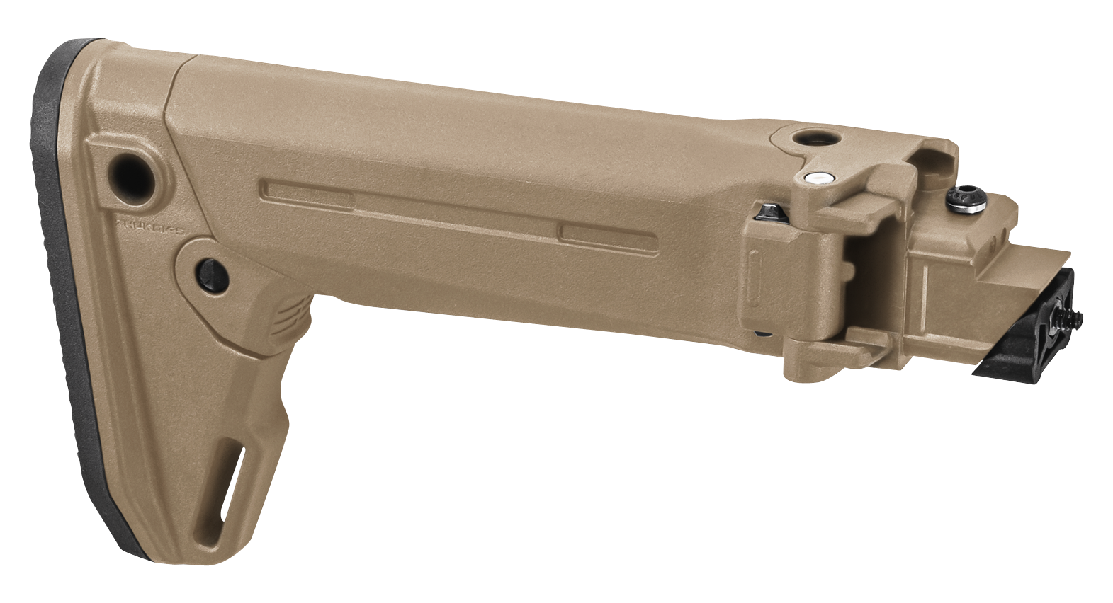 Made in the usa, the magpul zhukov-s stock is a no-compromise folding stock for the modern ak.The zhukov-s stock casts aside traditional ak stock shortcomings and offers a folding, collapsible stock with qd sling mounts, modular cheek risers, and a shock-absorbing rubber butt-pad for superior traction.The zhukov-s has right-side folding for compatibility with side-mounted optics.Designed to fit most common stamped ak receivers without modification via a unique wedge block, the durable injection molded polymer zhukov-s stock redefines the human interface with the ak platform.