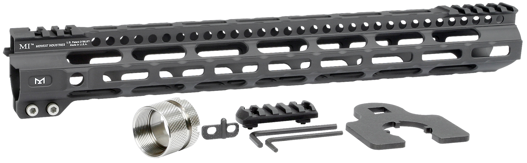 The ultra lightweight m-lok handguard features an extremely lightweight titanium barrel nut and screws.It is constructed of 6061 aluminum with a continuous 1913 picatinny top rail, two integral anti-rotation qd sling sockets and seven sides of m-lok.This handguard also utilizes a 4140 heat treated barrel nut, 4140 heat treated torque plate, and is fully dehorned and deburred.It includes a barrel nut, wrench and 5-slot polymer m-lok rail.Made in usa.