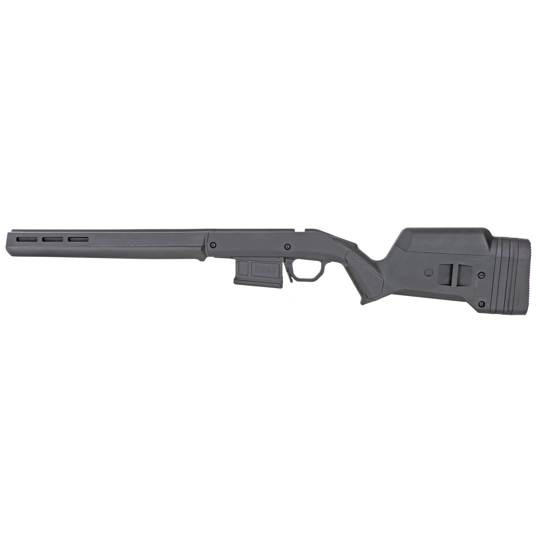 Constructed of reinforced polymer and an anodized aluminum bedding block with steel recoil lugs, the magpul hunter american stock offers users a cost-effective replacement featuring fully adjustable length of pull, comb height, and enhanced ergonomics.Compatible with the ruger american family of short action centerfire rifles, this stock requires no bedding and is your true drop-in solution.This stock is also m-lok compatible to accept a broad range of accessories to enhance your shooting experience.Included is our bolt action magazine well and a pmag 5 7.62 ac, which allows the rifle to be used with detachable box magazines without any need for custom inletting.This item is for the stock only and aforementioned, and does not include additional accessories.
