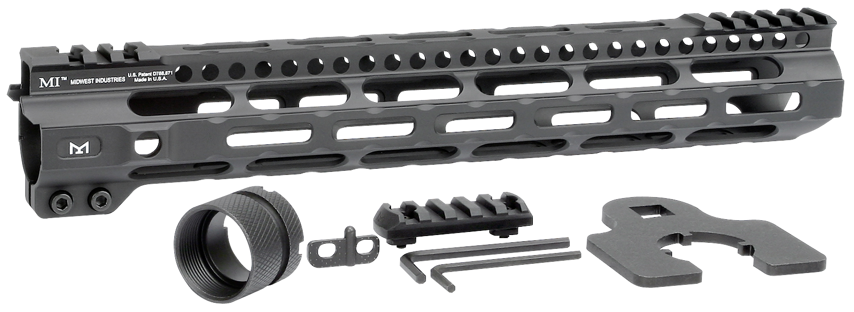 The ultra lightweight m-lok handguard features an extremely lightweight titanium barrel nut and screws.It is constructed of 6061 aluminum with a continuous 1913 picatinny top rail, two integral anti-rotation qd sling sockets and seven sides of m-lok.This handguard also utilizes a 4140 heat treated barrel nut, 4140 heat treated torque plate, and is fully dehorned and deburred.It includes a barrel nut, wrench and 5-slot polymer m-lok rail.Made in usa.