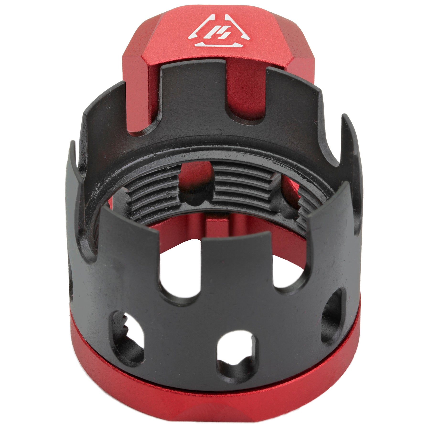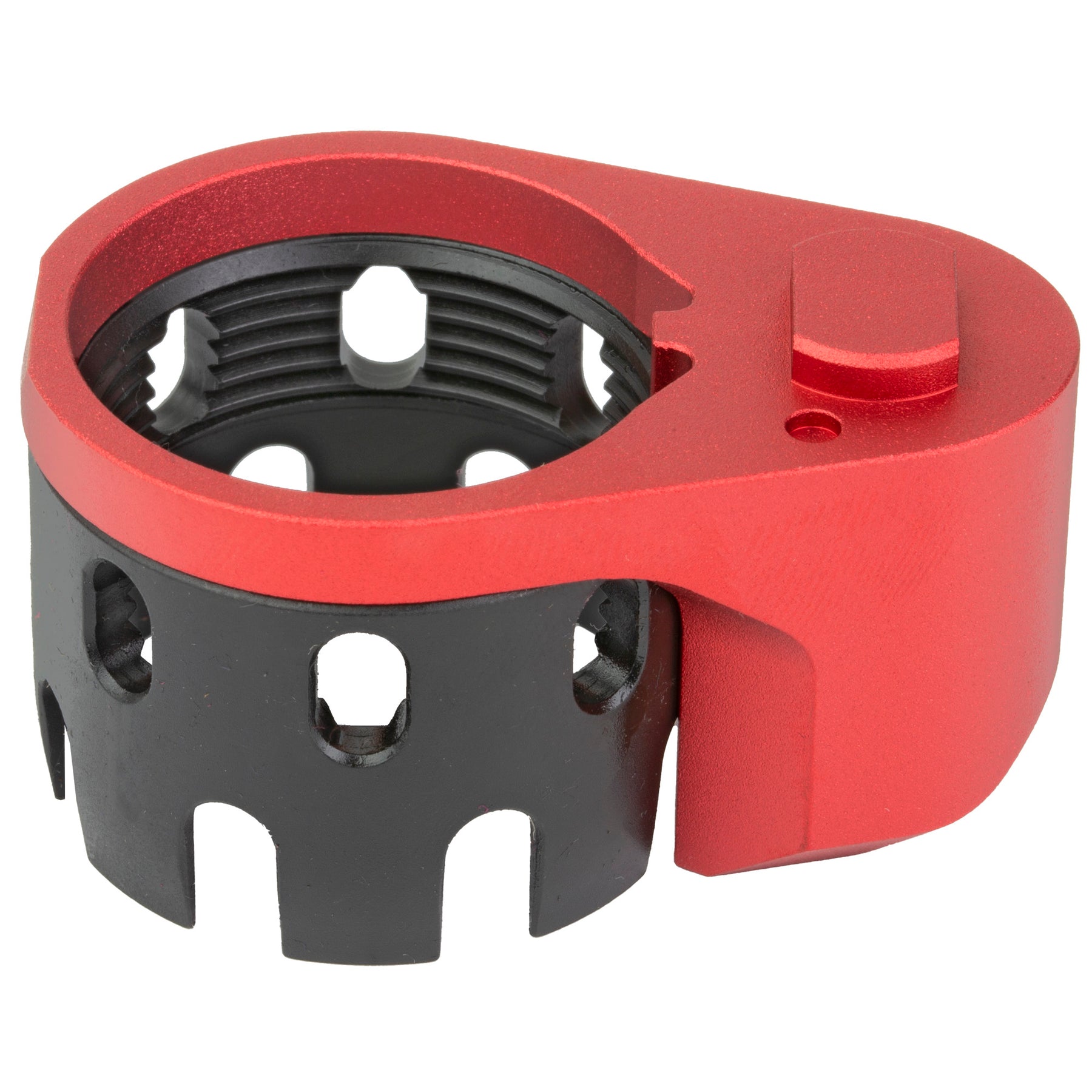 The enhanced castle nut and extended end plate combo stands out from the generic parts kit units in both aesthetics and function.The steel castle nut has been lengthened to match the extended end plate, supporting more of the receiver extension s threaded area, and improving aesthetics.The extended end plate features a quick detach sling swivel mount, pushed back away from the webbing of the primary hand.This allows weapons manipulations in tight spaces and under stress, without the startling pain that can result from a pinched hand when using a sling attached to a standard, flat qd end plate.