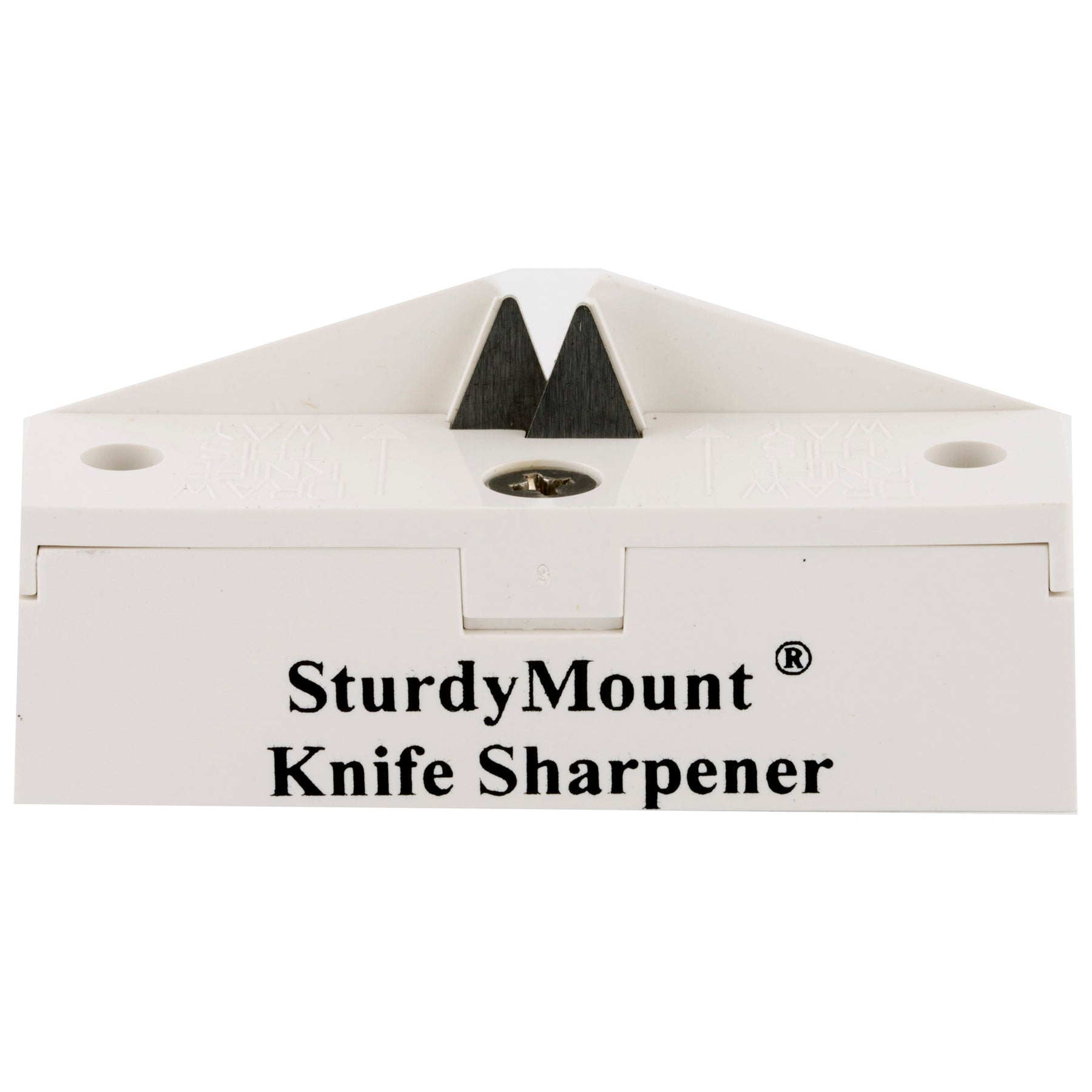 The accusharp sturdymount knife sharpener mounts easily to cutting boards, kitchen counters, filet boards, workbenches, butcher blocks and cleaning tables.No more messy oils or stones.The diamond-honed tungsten carbide blades are reversible and will give you an excellent sharpening finish for 5 to 10 years of normal household use.A durable abs plastic body and stainless steel screws make the sturdymount knife sharpener ideal for indoor and outdoor use.