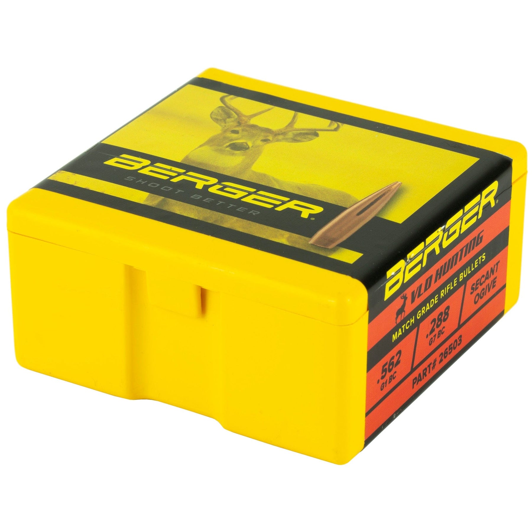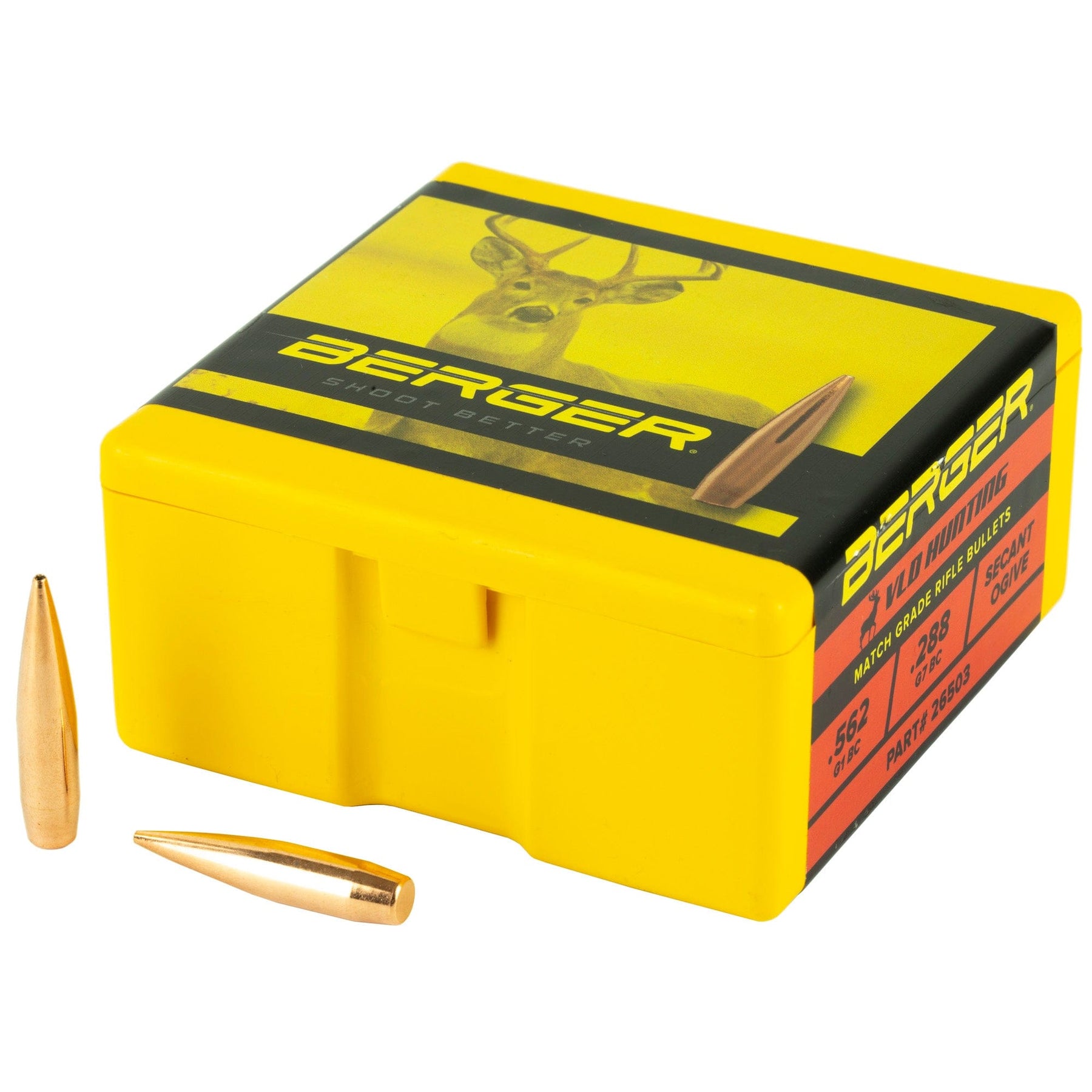 The berger vld hunting bullet is one of the flattest shooting hunting bullets in the industry.Vld hunting bullets are identical in design to vld target bullets except utilize a thinner j4 precision jacket for rapid expansion during game applications.Vld hunting bullets are designed to penetrate 2-3 and then begin to expand and create a massive wound cavity up to 15.The hydrostatic shock causes most animals to drop immediately.Vld hunting bullets incorporate a secant ogive design which allows the bullet to experience less drag as it travels to the target.This reduced drag is why the vld shoots flatter, experiences less wind-drift, and has a higher retained velocity than all others.A favorite load technique for the vlds is touching the rifling for single-shot applications, although some rifles may prefer as much as.150 from the rifling.Berger vld hunting bullets are extremely popular for long range hunting applications.Built with highly consistent j4 precision bullet jackets, most favored by custom bullet makers.