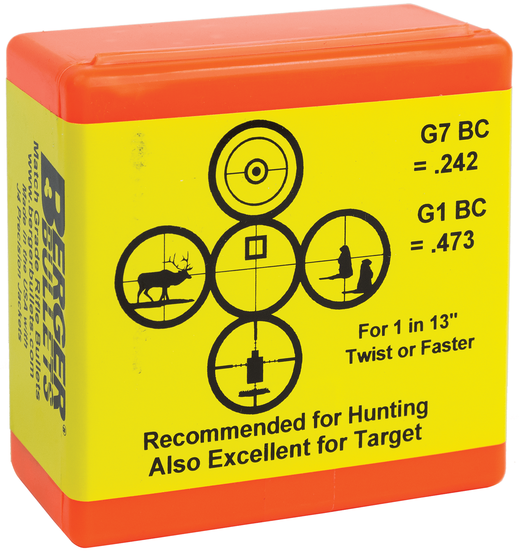 The berger vld hunting bullet is one of the flattest shooting hunting bullets in the industry.Vld hunting bullets are identical in design to vld target bullets except utilize a thinner j4 precision jacket for rapid expansion during game applications.Vld hunting bullets are designed to penetrate 2-3 and then begin to expand and create a massive wound cavity up to 15.The hydrostatic shock causes most animals to drop immediately.Vld hunting bullets incorporate a secant ogive design which allows the bullet to experience less drag as it travels to the target.This reduced drag is why the vld shoots flatter, experiences less wind-drift, and has a higher retained velocity than all others.A favorite load technique for the vlds is touching the rifling for single-shot applications, although some rifles may prefer as much as.150 from the rifling.Berger vld hunting bullets are extremely popular for long range hunting applications.Built with highly consistent j4 precision bullet jackets, most favored by custom bullet makers.