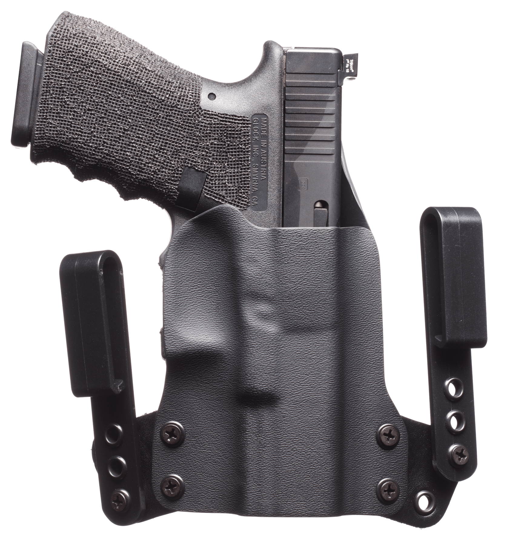 The Mini WING(TM) by BlackPoint Tactical is designed to be a minimized IWB holster which allows the user to carry comfortably all day long without sacrificing performance or durability. The pairing of KYDEX(R) and leather on this holster provides the functional benefits of a KYDEX(R) holster while providing the flexibility and comfort of a leather holster. The KYDEX(R) reliably retains your pistol without a break in or wear out period and it prevents the holster from collapsing when your pistol is drawn for easy one handed holstering. The mini wings give the holster flexibility to move with your body, making it comfortable for use all day, every day. Additionally, the mini wings were constructed to provide the user with a variety of different configurations for IWB carry with adjustments available to the cant and ride height of the holster.