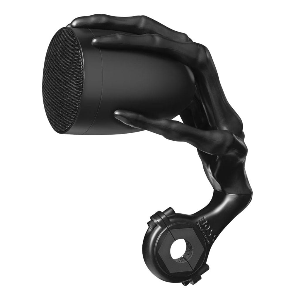 - Weatherproof Speakers with custom tooled chrome skeleton hand