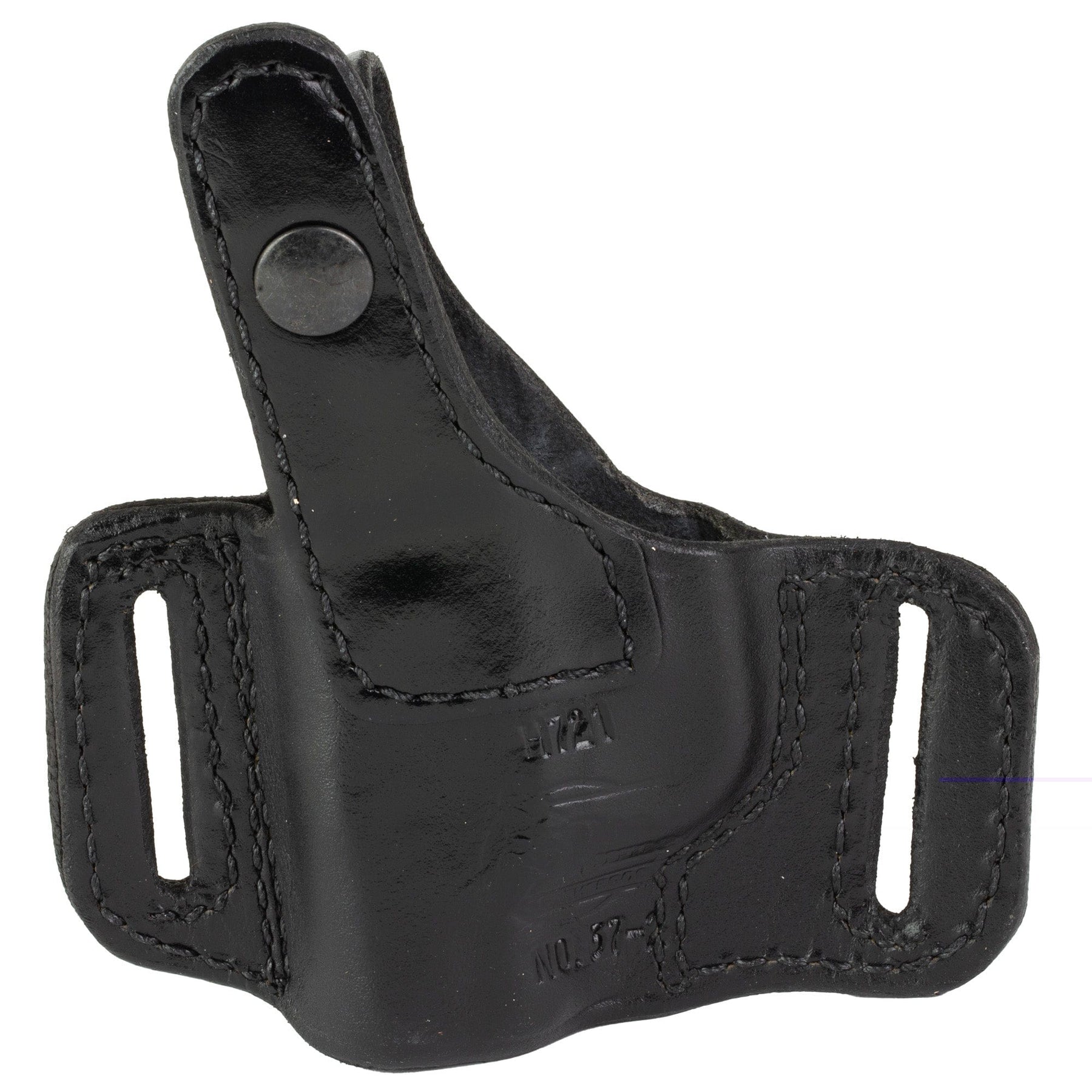 The H721 belt slide holster is a great concealment holster. Constructed with two-pieces of leather, it features a retention strap with metal reinforced thumb break, recessed snap and double stitched sew lines at stress areas for durability. The H721 has butt-forward cant and fits belts up to 1 3/4".