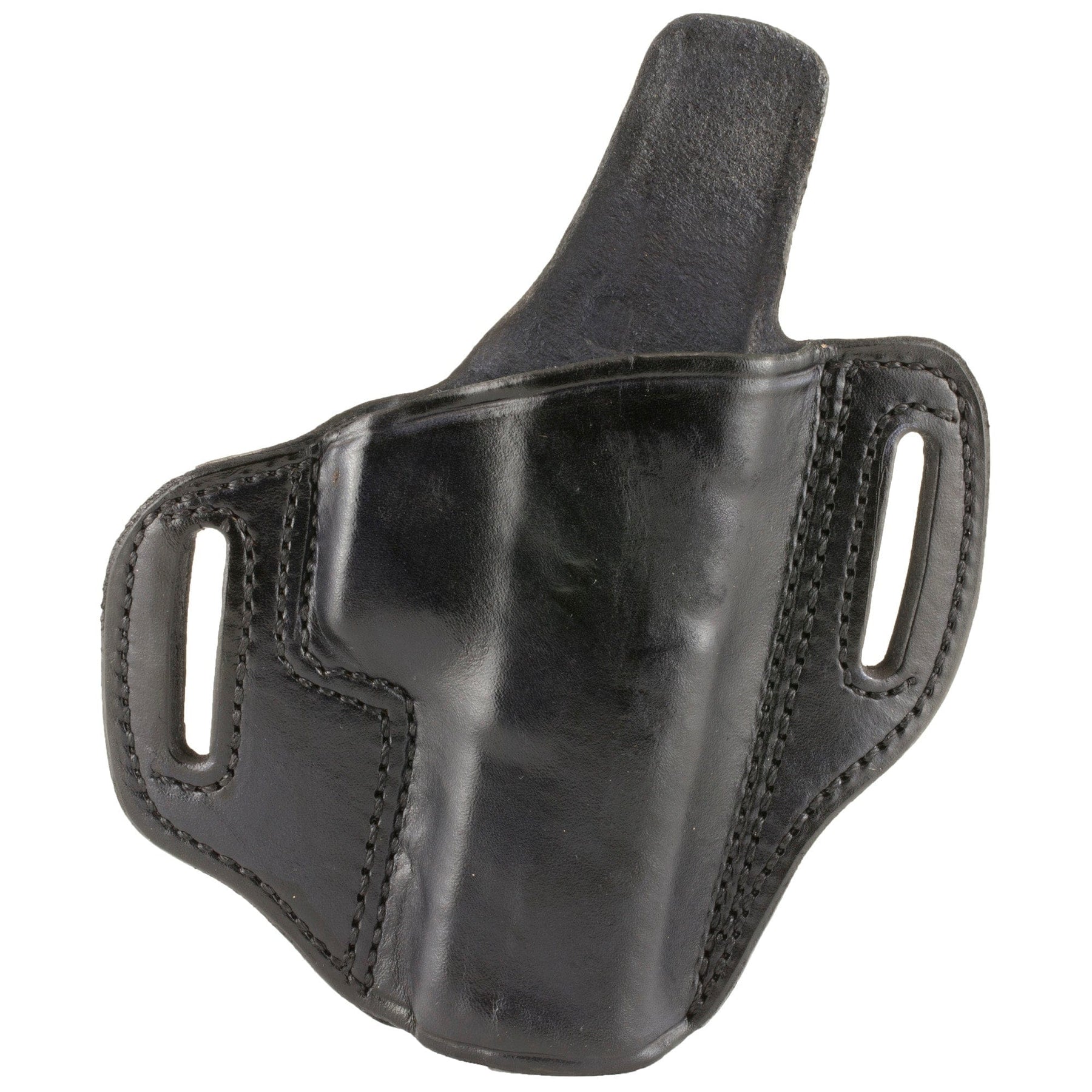 The H721 O.T. belt slide holster is one of Don Humes most popular designs. It features double stitched sew lines at stress areas for durability and a body shield to provide comfort between the firearm and the user. The Open Top design offers a swift draw from the holster. The H721 O.T. has a butt-forward cant and fits belts up to 1 3/4".