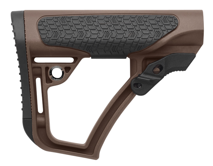 Daniel defense adjustable buttstock is constructed of a proprietary blend of glass infused polymers and finished off with soft touch rubber overmolding in strategic points.The buttstock is precision formed for mil-spec receiver extensions to have very little forward or lateral play that is so common in many other buttstocks.This eliminates the need for a tensioning device or friction lock.All of this results in a durable buttstock that will give the shooter a comfortable and repeatable cheek weld and unprecedented control of the firearm.The buttstock can be run with one of two included buttpads or without any buttpad at all to custom fit the rifle to whatever gear the operator must wear.The buttpads come in two sizes: a thicker convex shape (0.8"), and a thinner concave shape (0.5"); designed to keep from snagging when shouldering the rifle.Limited rotation qd swivel attachment points are integrated on both sides of the buttstock for ambidextrous sling connection.