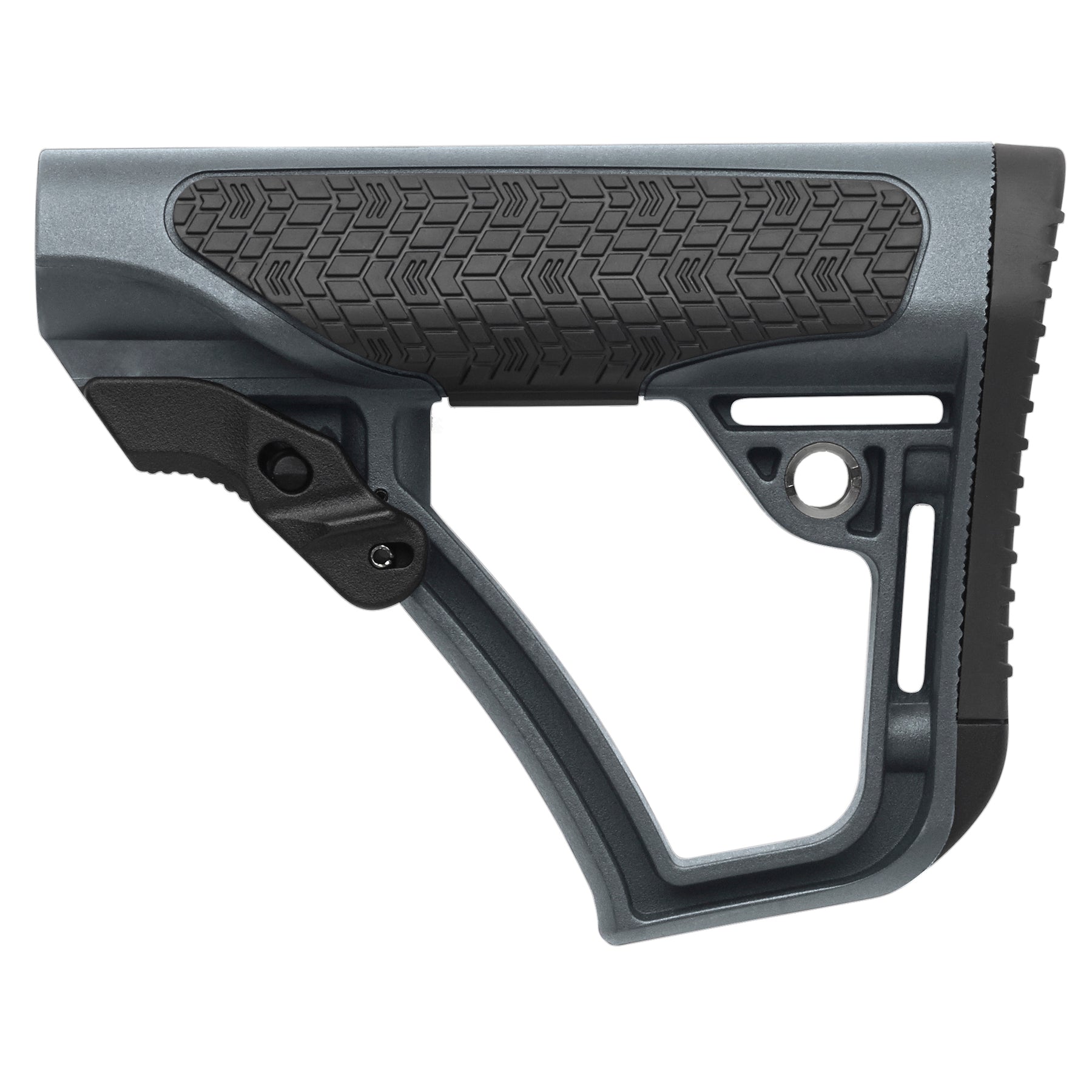 Daniel defense adjustable buttstock is constructed of a proprietary blend of glass infused polymers and finished off with soft touch rubber overmolding in strategic points.The buttstock is precision formed for mil-spec receiver extensions to have very little forward or lateral play that is so common in many other buttstocks.This eliminates the need for a tensioning device or friction lock.All of this results in a durable buttstock that will give the shooter a comfortable and repeatable cheek weld and unprecedented control of the firearm.The buttstock can be run with one of two included buttpads or without any buttpad at all to custom fit the rifle to whatever gear the operator must wear.The buttpads come in two sizes: a thicker convex shape (0.8"), and a thinner concave shape (0.5"); designed to keep from snagging when shouldering the rifle.Limited rotation qd swivel attachment points are integrated on both sides of the buttstock for ambidextrous sling connection.