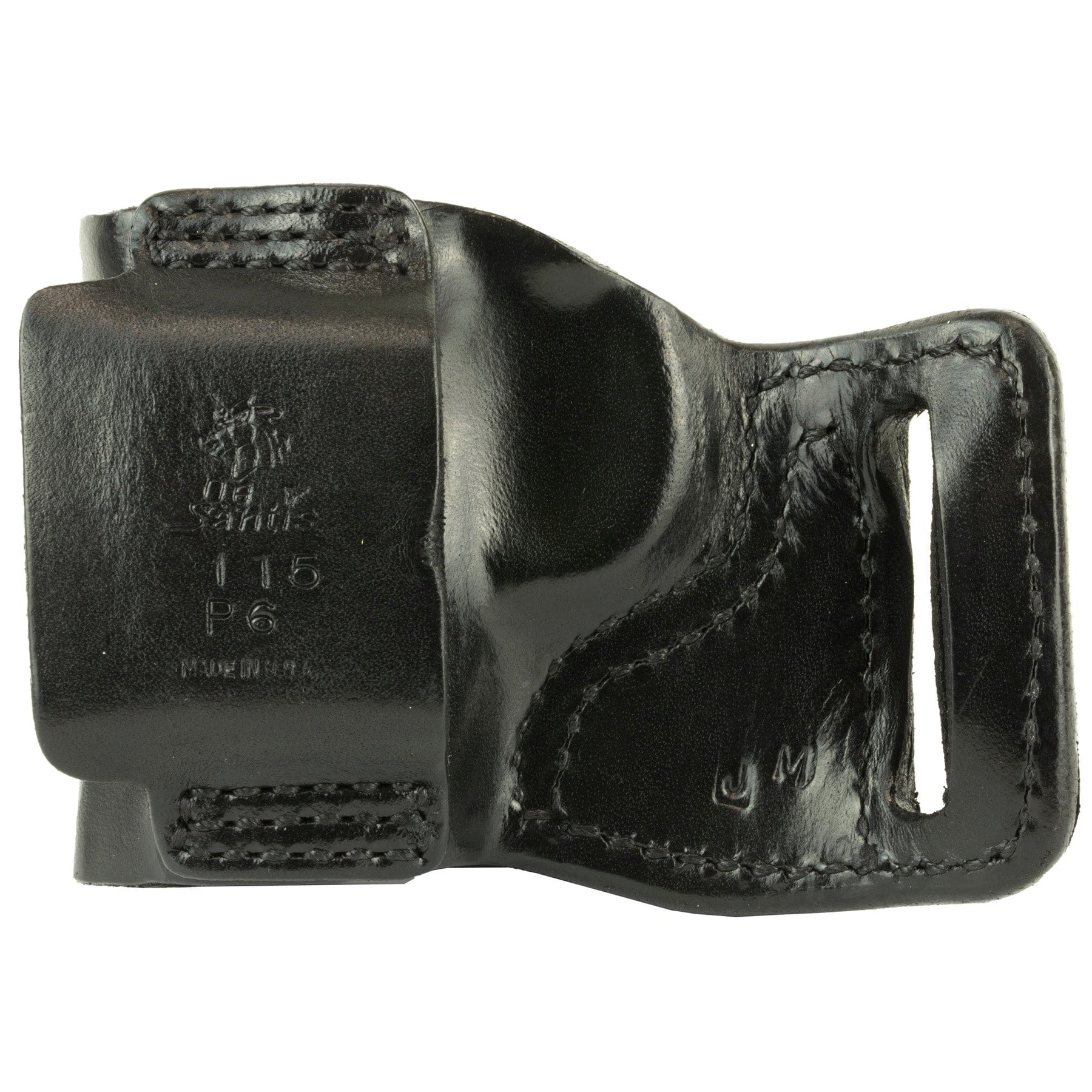 Their new E-Gat Slide is a basic neutral cant concealment OWB holster that works equally well on the strong side or cross draw. The E-Gat Slide works with both revolvers and autos and is offered only in BLACK-finished top grain leather. It is available for most medium & large autos and most small frame revolvers.