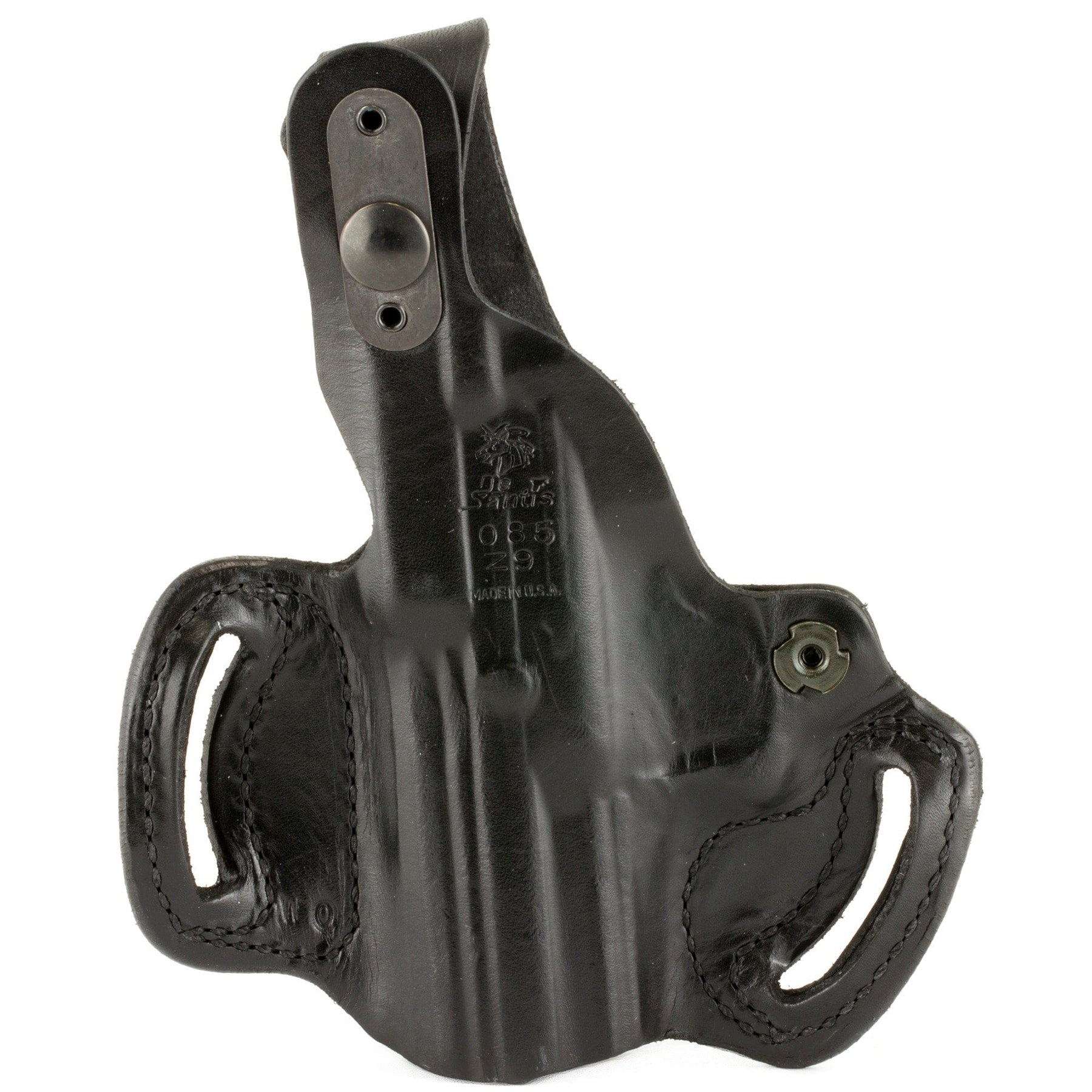 Premium saddle leather, double seams and a highly detailed molded fit, make this exposed muzzle, tight fitting, two-slot holster a great choice for your favorite pistol.It features an adjustable-tension device and belt slots that are 1.75" wide.