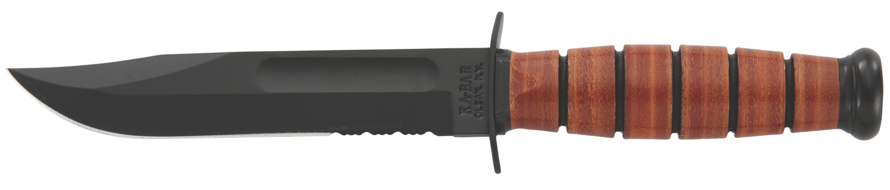 Ka-bar short usmc knife features ka-bar's famous oval shaped leather handles, and is made just as well as the original at 3/4 the size.Tang stamped usmc.Includes sheath.Made in the usa.