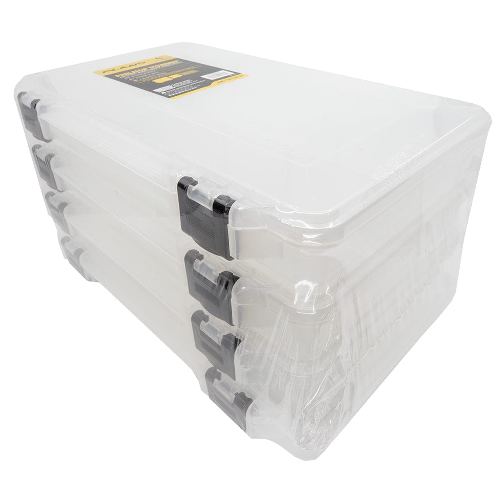 A shrink wrapped bulk package of one Plano's most popular utility boxes, the Plano ProLatch Stowaway Utility Box 4-Packs are perfect for guides, professional anglers, or anyone storing and organizing large collections of tackle. These boxes are ideal for use in a wide variety of tackle bags and are the perfect size to fit in tackle storage compartments on many boats. The 3700 size boxes have 4 fixed compartments and can have up to 24 compartments per box with the use of the adjustable dividers.