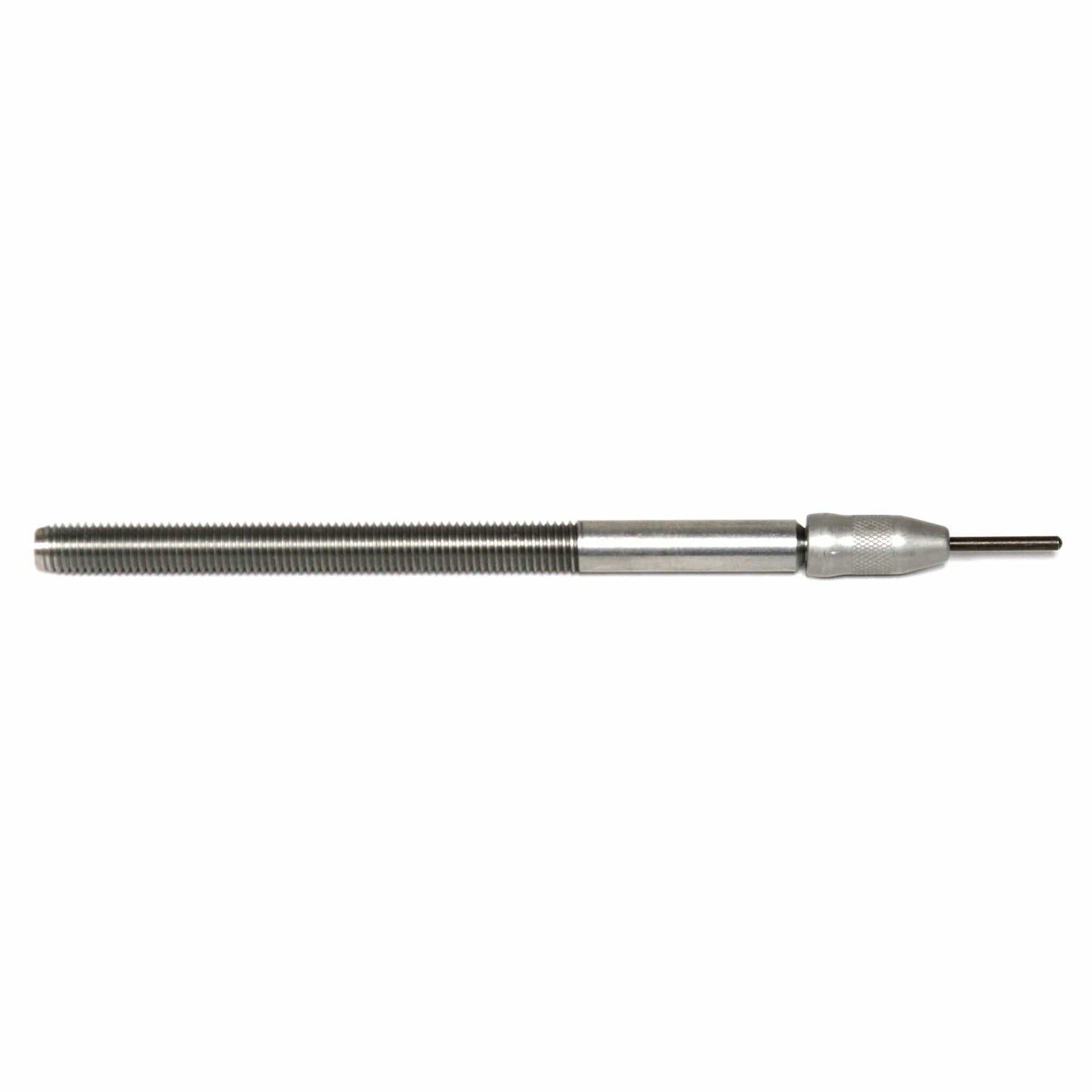 This unit features an expander rod and ball and a decapping pin.It's used with sizing dies to de-prime the case and expand the neck in bottleneck cartridges.