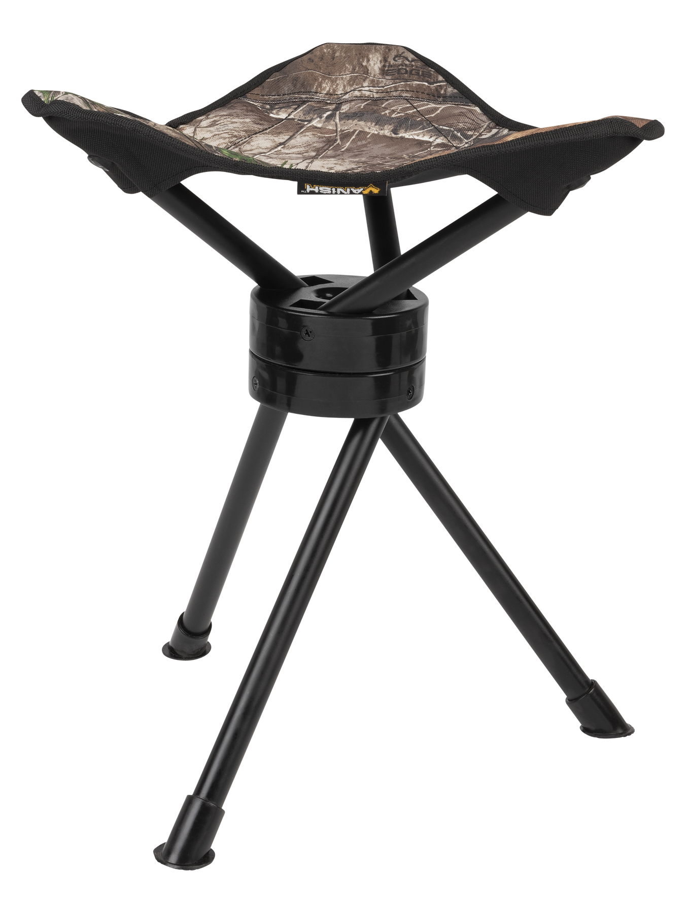 The vanish swivel tripod stool is an easy-to-carry folding stool.It opens and folds up in seconds, making it a great choice to bring on a hunt.