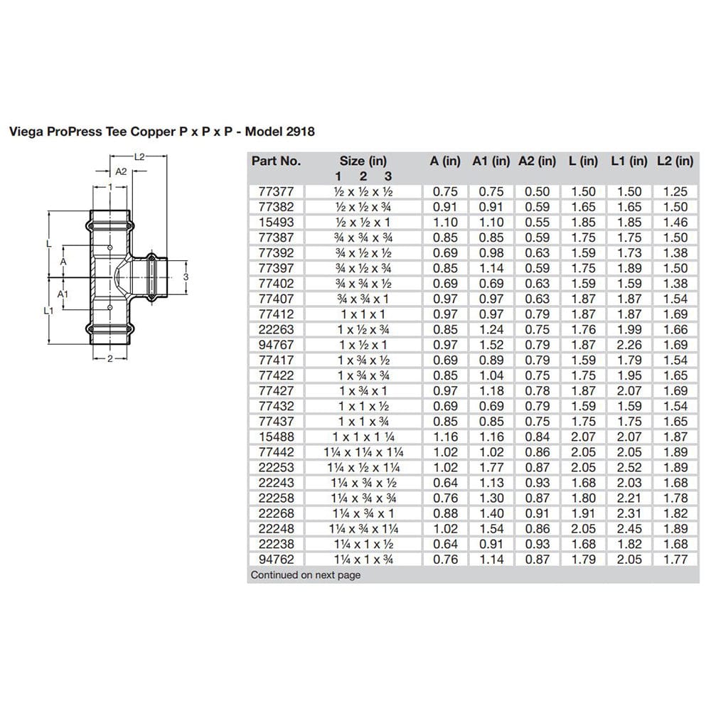 ProPress 1" Copper Tee - Triple Press Connection - Smart Connect Technology