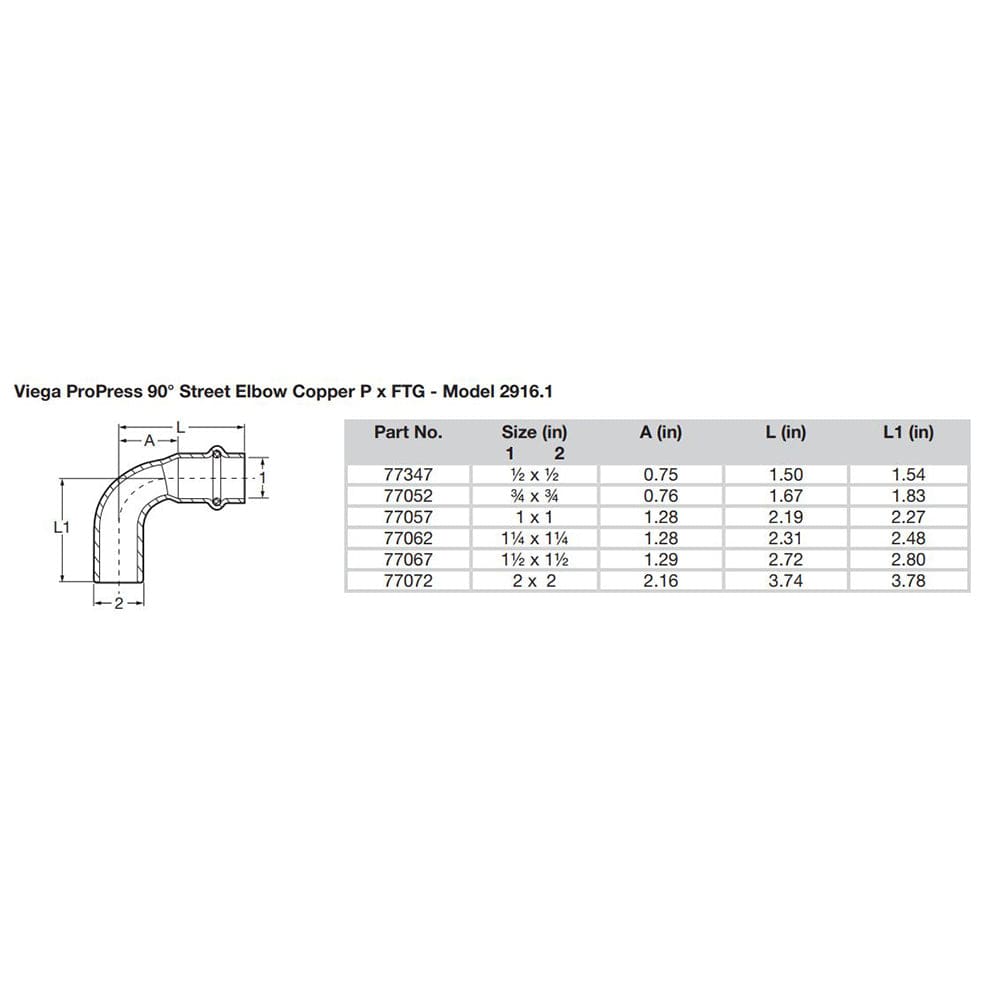 Viega ProPress 3/4" - 90° Copper Elbow - Street/Press Connection - Smart Connect Technology