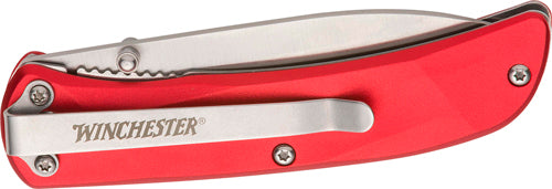 Winchester knife 6.75" oal ss /red aluminum handle w/clip Other Features: Ss blade, aluminum handle, liner lock design, pocket clip